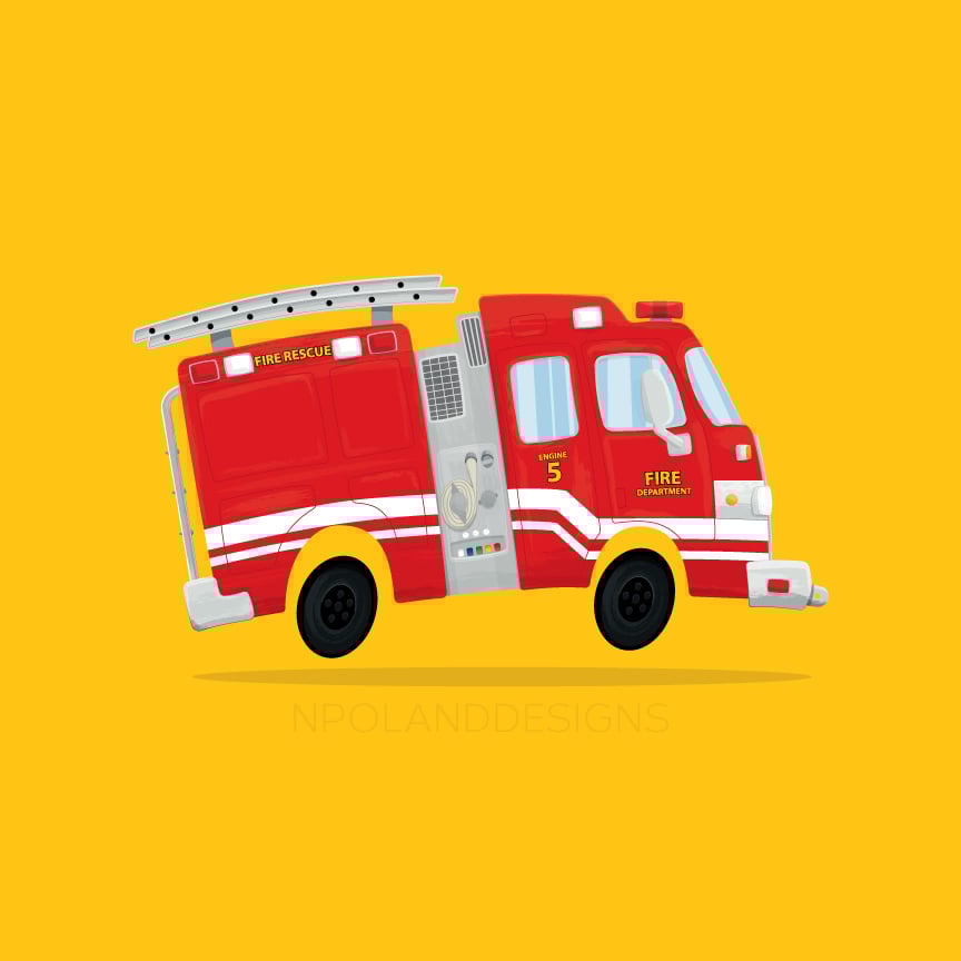 Cute Firetruck Digital Vector Art. Just waiting for you to download it, print it, and hang it on the wall.